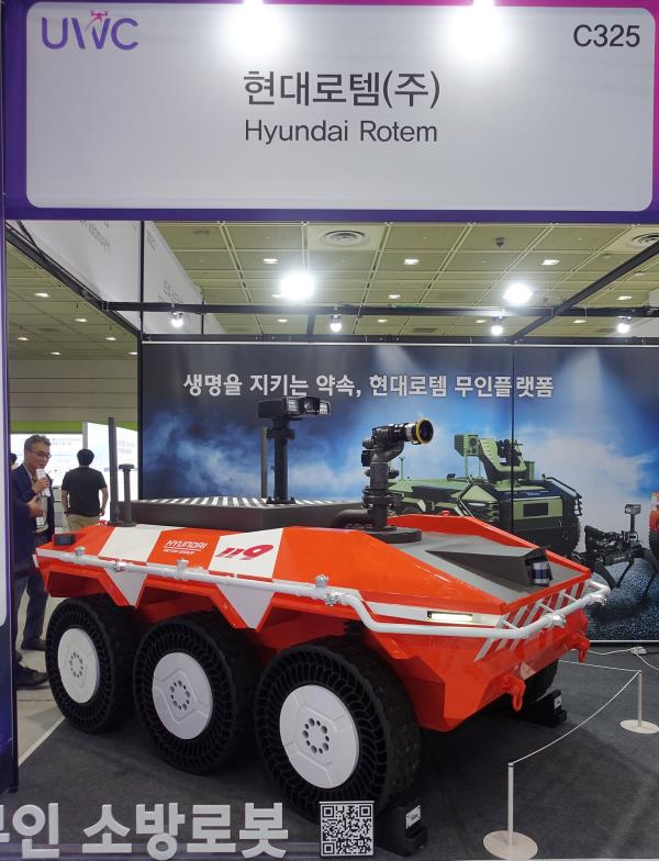 ¢º Çö´ë·ÎÅÛ : ‘¹«ÀÎ ¼Ò¹æ·Îº¿’Àº Çö´ë·ÎÅÛÀÇ ´Ù¸ñÀû ¹«ÀÎÂ÷·®DLS ‘HR-¼Î¸£ÆÄ’¸¦ Ç÷§ÆûÀ¸·Î ÈÀç Áø¾Ð Àåºñ¸¦ žÀçÇÑ Â÷·®ÀÌ´Ù. ‘HR-¼Î¸£ÆÄ’´Â Àüµ¿È Â÷·®À¸·Î ¿ø°Ý, ¹«ÀÎ ¿î¿ëÀÌ °¡´ÉÇØ »ç¶÷À» ´ë½ÅÇØ ÀÓ¹«¸¦ ¼öÇàÇÒ ¼ö ÀÖ´Ù. ¼Ò¹æ·Îº¿Àº ¼Ò¹æÂ÷¿Í ¼Ò¹æ´ë¿øÀÌ ÁøÀÔÇϱ⠾î·Á¿î ÁöÇÏ ÁÖÂ÷Àå µî¿¡¼ÀÇ ¼Ò¹æ Ȱµ¿À» µ½±â À§ÇØ °³¹ßµÈ Àåºñ·Î, ¹°ÅÊÅ©°¡ µû·Î ÀÖ´Â °Ô ¾Æ´Ï¶ó ¼ÒÈÀü È£½º¸¦ ¿¬°áÇÏ¿© ¾Ð·Â ±×´ë·Î ºÐ»çÇÏ´Â ¹æ½ÄÀÌ´Ù.