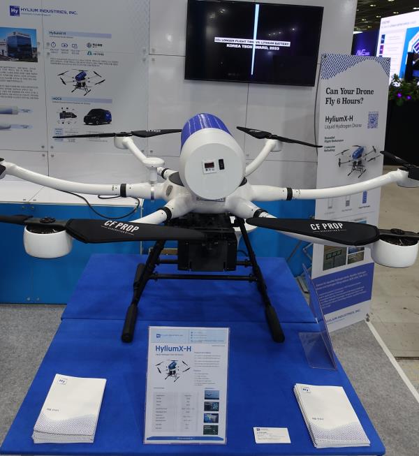 ¢º ÇÏÀ̸®¿ò : Çѱ¹°úÇбâ¼ú¿¬±¸¿ø(KIST)ÀÇ º¥Ã³±â¾÷ÀÎ ÇÏÀ̸®¿ò»ê¾÷Àº ±¹³» ÃÖÃÊ·Î ±ØÀú¿Â ¾×ü¼ö¼Ò Á¦Á¶ ¹× ÀúÀå ±â¼úÀ» °³¹ßÇß´Ù. À̹ø Àü½Ãȸ¿¡¼´Â ¾×ȼö¼Ò ±â¹ÝÀÇ ¿¬·áÀüÁö µå·Ð ‘HyliumX-H’¸¦ ¼Ò°³Çß´Ù. ÇØ´ç ±âÁ¾¿¡´Â Ãʰ淮 ¾×ȼö¼ÒÅÊÅ©¿Í PEM ¿¬·áÀüÁö¸¦ °áÇÕÇÑ ÆÄ¿öÆÑÀÌ Å¾ÀçµÇ¾î ÀÖ´Ù. 5ºÐ À̳»ÀÇ ÂªÀº ÃæÀü ½Ã°£À¸·Î ÃÖ´ë 7½Ã°£±îÁö ºñÇà °¡´ÉÇϸç, ÃÖ´ë 15km °Å¸® ¿µ»ó ¼Û½ÅÀÌ °¡´ÉÇÏ´Ù.