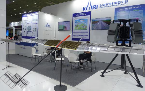 ¢º Çѱ¹Ç×°ø¿ìÁÖ¿ø(KARI) : ¼ºÃþ±Ç ž籤 µå·Ð ‘EAV’½Ã¸®Á ¼±º¸¿´´Ù. ’13³â °³¹ßµÈ ‘EAV-2’´Â žçÀüÁö/¹èÅ͸®/¿¬·áÀüÁö¸¦ ÀåÂøÇß´Ù. ³¯°³ ±æÀÌ 7m¿¡ ÃÑ Áß·®Àº 18kgÀÌ¸ç °íµµ 5km±îÁö »ó½ÂÇÒ ¼ö ÀÖ´Ù. ’20³â °³¹ßµÈ ‘EAV-3’´Â žçÀüÁö/¹èÅ͸®¸¦ ÀåÂøÇß´Ù. ³¯°³ ±æÀÌ 20m, ÃÑ Áß·® 66.5kgÀÌ¸ç °íµµ 22km±îÁö »ó½ÂÇÏ¿© ¼ºÃþ±Ç¿¡¼ 53½Ã°£ ¿¬¼Ó ºñÇàÇÑ ±â·ÏÀÌ ÀÖ´Ù. ’22³â °³¹ßµÈ ‘EAV-4’´Â ³¯°³ ±æÀÌ 30m, ÃÑ Áß·® 150kgÀ̸ç, ¼ºÃþ±Ç¿¡¼ 20kg ÀÌ»ó ÀÓ¹«Àåºñ¸¦ žÀçÇϰí 30ÀÏ ÀÌ»ó ºñÇà °¡´ÉÇÑ Å¾籤 µå·ÐÀÌ´Ù.