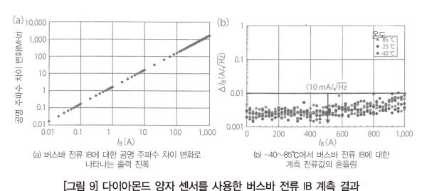 ÆÄ¿ö µð¹ÙÀ̽º ³»ºÎ ¸ð´ÏÅ͸µ ´ÙÀ̾Ƹóµå´Â ÆÄ¿ö µð¹ÙÀ̽º Àç·á·Îµµ ¿¬±¸µÇ°í ÀÖ´Ù. [±×¸² 10-(a)]¿¡¼ º¸µíÀÌ ´ÙÀ̾Ƹóµå´Â ºØ¼Ò¿Í ÀÎÀ» µµÇÎÇØ PiN Á¢ÇÕÀ» ¸¸µé ¼ö ÀÖ´Ù. PiN Á¢ÇÕÀÇ iÃþ ¾È¿¡ NV ¼¾Å͸¦ Çü¼ºÇϰí, ¿ª¹æÇâ ¹ÙÀ̾·Î °Àü°è¸¦ °Ç »óÅ¿¡¼ ODMRÀ» °üÃøÇß´Ù. ±×¸®°í [±×¸² 10-(b)]¿Í °°ÀÌ Àü°è °µµ °ª¿¡ ´ëÀÀÇÑ NV ¼¾ÅÍÀÇ ÀüÀÚ »óÅ¿¡ ´ëÇÑ ½´Å¸¸£Å© È¿°ú(Stark effect)·Î ODMRÀÇ °ø¸í Á֯ļö°¡ º¯ÇÏ´Â °ÍÀ» È®ÀÎÇß´Ù. ÇØ´ç ±â¼úÀº µ¿ÀÛ ÁßÀÎ ÆÄ¿ö µð¹ÙÀ̽º ³» Àü°è ÁýÁß °ËÃâ¿¡ Àû¿ëÇÒ ¼ö ÀÖ¾î, °íÀå ÇØ¼®°ú µð¹ÙÀ̽ºÀÇ ½Å·Úµµ Çâ»óÀ¸·Î À̾îÁø´Ù. ¶ÇÇÑ ÆÄ¿ö µð¹ÙÀ̽º ³»ºÎÀÇ Àü°è º¤Å͸¦ °èÃøÇÏ´Â °Íµµ °¡´ÉÇÏ´Ù.