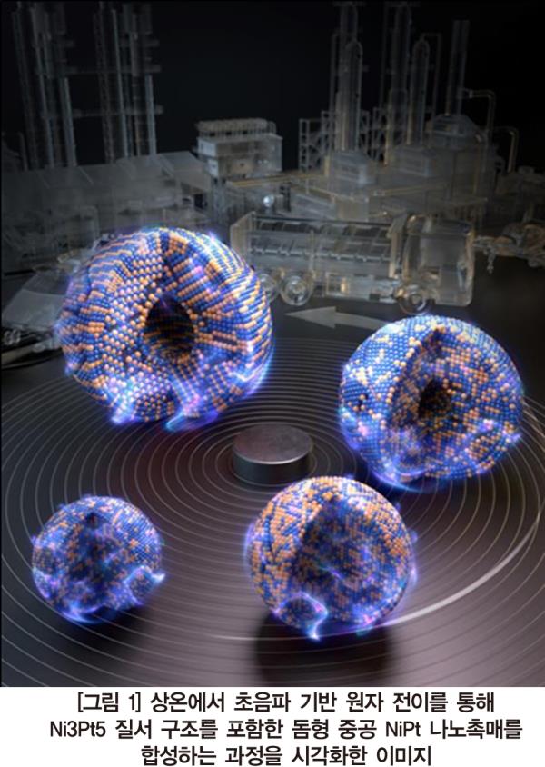 »ó¿Â¿¡¼ ÃÊÀ½ÆÄ·Î ¸¸µå´Â °í¼º´É ¿¬·áÀüÁö Ã˸бâ¼ú °³¹ß ¹é±Ý+´ÏÄÌ Á¤¹Ð ¹è¿ÇÑ ³ª³ëÀÔÀÚ…¼º´É&³»±¸¼º 4¹è↑ Çѱ¹°úÇбâ¼ú¿¬±¸¿ø(KIST) ¼ö¼Ò·¿¬·áÀüÁö¿¬±¸´Ü À¯¼ºÁ¾ ¹Ú»ç ¿¬±¸ÆÀÀÌ Æ÷Ç×°ø°ú´ëÇб³(POSTECH) õµ¿¿ø ±³¼ö, Çѱ¹°úÇбâ¼ú¿ø(KAIST) ¾ç¿ë¼ö ±³¼ö, µ¿±¹´ëÇб³ ÁøÇÏ´Ã ±³¼ö¿Í °øµ¿À¸·Î °í¼º´É·°í³»±¸¼º Ã˸Ÿ¦ »ó¿Â¿¡¼ ¼Õ½±°Ô ÇÕ¼ºÇÒ ¼ö ÀÖ´Â ±â¼úÀ» °³¹ßÇß´Ù. ÇØ´ç Ã˸Ŵ ¹é±Ý°ú ´ÏÄÌÀ» Á¤¹ÐÇÏ°Ô ¹è¿ÇÑ ³ª³ëÀÔÀÚ·Î, ¹ÝÀÀ ¸éÀûÀ» ³ÐÈ÷°í Ã˸мսÇÀ» ÁÙÀ̱â À§ÇØ ³»ºÎ°¡ ºñ¾î ÀÖ´Â µ¼ ÇüÅÂÀÇ ±¸Á¶·Î ¼³°èµÆ´Ù.