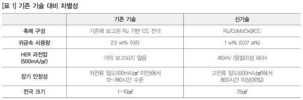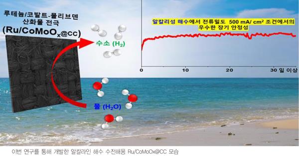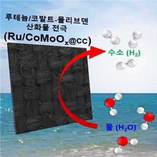 “°íÈ¿À²ÀÌ¸é¼ °æÁ¦ÀûÀÎ ¼ö¼Ò »ý»ê±â¼ú” Æò°¡ ¿¬±¸ÁøÀº Àü±â°¡ Àß ÅëÇϴ ź¼Ò¼¶À¯(Carbon cloth, CC) À§¿¡ ·çÅ×´½(Ru), ÄÚ¹ßÆ®(Co), ¸ô¸®ºêµ§(Mo)À» Á¶ÇÕÇÑ °í¼º´É Ã˸Ÿ¦ ¾ñ¾î ¼ö¼Ò »ý»ê¿ë Àü±Ø(Ru/CoMoOx@CC)À» Á¦ÀÛÇß´Ù. ź¼Ò¼¶À¯´Â ¸Ó¸®Ä«¶ôó·³ ¾ãÀº ź¼Ò ½ÇÀÌ ÃµÃ³·³ Â¥¿© ÀÖ´Â ±¸Á¶·Î, Àü±â Ã˸Ÿ¦ ÁöÁöÇÏ´Â »À´ë ¿ªÇÒÀ» Çϰí, Àü±â È帧À» µµ¿Í Àü±Ø ¼º´ÉÀ» ³ôÀÌ´Â ¿ªÇÒÀ» ÇÑ´Ù.