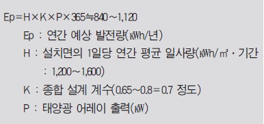 ©Î ½Ã½ºÅÛ ÀÌ¿ë·ü¿¡ ÀÇÇÑ »êÃâ ¹æ¹ý ½Ã½ºÅÛÀÇ ¿¬°£ ¿¹»ó ¹ßÀü·®(§Òh/³â)Àº ´ÙÀ½ ½ÄÀ¸·Î °è»êÇÒ ¼ö ÀÖ´Ù.