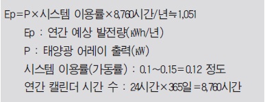 °³»ê(ËÈß©)¿¡ ÀÇÇØ ÇÊ¿ä Ãâ·ÂÀ» 10¹è·Î Çϸé žçÀüÁö ¼³Ä¡ÀÇ ÇÊ¿ä ¸éÀûÀ» ±¸ÇÒ ¼ö ÀÖÀ¸¸ç, žçÀüÁö ¸éÀûÀÇ 1/10ÀÌ Á¤°Ý Ãâ·ÂÀÌ µÈ´Ù.