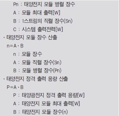 ž籤ÀüÁö ¸ðµâ¿¡´Â Àå´ç Ãâ·Â(°øÄª ÃÖ´ë Ãâ·Â)°ú »çÀÌÁî°¡ ÀÖ´Ù. ¹èÄ¡ °èȹ¿¡¼ÀÇ ¸ðµâ ÇÕ°è Àå¼ö¿¡ Àå´ç Ãâ·Â°ú »çÀÌÁ °öÇϸé žçÀüÁö ¾î·¹À̸¦ ÆòÆòÇÏ°Ô ³õ¾ÒÀ» ¶§ÀÇ Ãâ·Â°ú ¸éÀûÀ» ±¸ÇÒ ¼ö ÀÖ´Ù. ¿©±â¿¡¼´Â °£´ÜÈ÷ »êÃâÇϱâ À§ÇØ ´ÙÀ½ÀÇ µÎ °¡Áö ¹æ¹ýÀ» ¼Ò°³ÇÑ´Ù. ©Í ž翡³ÊÁö·ÎºÎÅÍ »êÃâÇÏ´Â ¹æ¹ý ž籤Àº 1§³´ç 1§Ò¿¡ ÇØ´çÇÏ´Â ¿¡³ÊÁö¸¦ °¡Áö°í ÀÖÀ¸¸ç, ½Ã½ºÅÛÀÇ Á¾ÇÕ º¯È¯È¿À²À» 10%·Î Çϸé Á¤°Ý Ãâ·ÂÀº 1§Ò×10%=100W°¡ µÈ´Ù. µû¶ó¼ 10§³ÀÇ Å¾çÀüÁöÀÇ °æ¿ì, 1§ÒÀÇ Á¤°Ý Ãâ·ÂÀ» »ý°¢ÇÒ ¼ö ÀÖ´Ù. ©Î žçÀüÁöÀÇ Ç¥ÁØ ´ÜÀ§ ¸éÀû´ç Ãâ·ÂÀ» »óÁ¤ÇØ »êÃâÇÏ´Â ¹æ¹ý