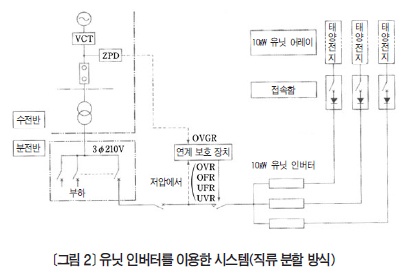 Àü±âÀûÀ¸·Î´Â žçÀüÁöÀÇ Àü¾Ð º¯µ¿ ¹üÀ§¿Í ÆÄ¿öÄÁµð¼Å³ÊÀÇ ÃÖ´ë Àü·Â ÃßÁ¾ Á¦¾î ¹üÀ§¸¦ Æ÷ÇÔÇÑ Á÷·ù ÀÔ·Â ¹üÀ§ÀÇ Á¤ÇÕ¼ºÀ» È®ÀÎÇÒ Çʿ䰡 ÀÖ´Ù. ¶ÇÇÑ Å¾çÀüÁöÀÇ °³¹æÀü¾ÐÀÌ ÆÄ¿öÄÁµð¼Å³ÊÀÇ ÃÖ´ëÀÔ·ÂÀü¾ÐÀ» ³ÑÁö ¾Ê´ÂÁöµµ È®ÀÎÇÑ´Ù. ÃÖ±Ù¿¡´Â 10§Ò ´ÜÀ§ÀÇ À¯´Ö ÀιöÅͰ¡ ¸¹ÀÌ »ç¿ëµÇ°í ÀÖ´Ù. À¯´Ö ÀιöÅ͸¦ »ç¿ëÇÑ ½Ã½ºÅÛÀº <±×¸² 2>¿Í °°Àº ¹æ½ÄÀÌ ÀÖ´Ù.