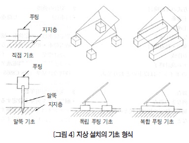 ©è¼³°èÁ¶°ÇÃßÃâ ©Í Å¾çÀüÁö ¾î·¹ÀÌÀÇ ¹æÀ§°¢°ú °æ»çµµ ¡¤ žçÀüÁö¸¦ ¼³Ä¡ÇÏ´Â ¹æÀ§¿¡ µû¶ó ¹ßÀü·®ÀÌ º¯ÇÑ´Ù. Á¤³²ÂÊÀ» 100%¶ó°í ÇÒ °æ¿ì Á¤µ¿ ¡¤ Á¤¼ÂÊÀº 84%, Á¤ºÏÂÊÀº 63%ÀÇ ¹ßÀü·®À» ¾òÀ» ¼ö ÀÖ´Ù(µµÄì, °æ»ç°¢ 30µµÀÇ °æ¿ì). ¡¤ žçÀüÁö¸¦ ¼³Ä¡ÇÒ °æ»ç°¢µµ´Â °æ»çµµ 30µµ¿¡¼ Àϻ緮 100%¿¡ ´ëÇØ °æ»ç°¢ 0µµÀÏ ¶§¿¡´Â ¾à 89% Á¤µµ°¡ µÈ´Ù(µµÄì, ¹æÀ§ Á¤³²ÂÊ). ©Î žçÀüÁö ¾î·¹ÀÌ¿ë °¡´ë ¨ç °¡´ë ÀçÁú ¡¤ ȯ°æ Á¶°Ç°ú ¼³°è ³»¿ë¿¬¼ö(Ò±éÄ곐겤)¿¡ µû¶ó ¼±Åà ¡¤ °áÁ¤ÇÑ´Ù. ¨è °¡´ë °µµ ¡¤ ÀÚÁß(í»ñì)¿¡ dz¾Ð·ÂÀ» °¡¹ÌÇÑ ÇÏÁßÀ» °ßµ®¾ß ÇÑ´Ù. ¡¤ »óÁ¤ÇÏÁßÀº °íÁ¤ÇÏÁß ¡¤ dz¾ÐÇÏÁß ¡¤ Àû¼³ÇÏÁß ¡¤ ÁöÁøÇÏÁßÀÌ ÀÖ´Ù.