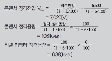 1. Á¤°ÝÀü¾Ð ¡¤ Á¤°Ý¿ë·®ÀÇ º¯°æ °íÁ¶ÆÄ ÀåÇØ ¹æÁö ¹æÃ¥À¸·Î¼ Äܵ§¼¿¡ L=6%Á÷·Ä ¸®¾×Å͸¦ Ç¥ÁØÀ¸·Î ¼³Ä¡ÇØ »ç¿ëÇÏ´Â °ÍÀ» ¿øÄ¢À¸·Î Çß´Ù. Äܵ§¼ÀÇ Á¤°ÝÀü¾ÐÀº Á÷·Ä ¸®¾×ÅÍ ¼³Ä¡¿¡ µû¸¥ ¾çÀÚÀü¾Ð »ó½ÂºÐÀ» Æ÷ÇÔÇÑ Àü¾ÐÀÌ´Ù. ¶ÇÇÑ Äܵ§¼ÀÇ Á¤°Ý¿ë·®Àº Äܵ§¼ ¼³ºñÀÇ Á¤°Ý ¼³ºñ¿ë·®¿¡ Á÷·Ä ¸®¾×Å͸¦ ´õÇÑ °ÍÀÌ´Ù. Á¤°Ý ¼³ºñ¿ë·®À̶õ Äܵ§¼¿Í ¸®¾×Å͸¦ Á¶ÇÕ½ÃŲ ¼³ºñÀÇ ¼³°è ¹«È¿Àü·ÂÀ¸·Î, ¿¹¸¦ µé¾î ȸ·ÎÀü¾ÐÀÌ 6,600V, Á¤°Ý ¼³ºñ¿ë·®ÀÌ 100kvar, L=6%¸¦ ¼³Ä¡ÇÒ °æ¿ì
