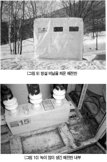 ¹æÁö ´ëÃ¥ Àý¿¬¹°¿¡ ´ëÇÑ ´ëÃ¥£ü¹èÀü¹Ý¿¡ »ç¿ëÇÏ´Â °í¾Ð ±â±â´Â ¿Á³», ¿Á¿Ü ¼³Ä¡¿¡ °ü°è¾øÀÌ ¸ðµÎ ¿Á³» »ç¾çÀÌ´Ù. µû¶ó¼ ´«ÀÌ ¸ô¾ÆÃÄ Àü¼± ÁöÁö¹°À̳ª LBS¿¡ ºÙÀ¸¸é ¼öÁö ¿¬¸éæÍØü¿¡ Æ®·¡Å·ÀÌ ¹ß»ýÇϱ⠽±´Ù. ´«ÀÌ µé¾î¿À´Â °ÍÀ» ¸·À» ¼ö ¾ø´Â °æ¿ì ¿Á¿Ü »ç¾çÀÇ ±â±â¸¦ ¼±ÅÃÇÏ¸é µÇ°ÚÁö¸¸, ¼³Ä¡ °ø°£°ú ºñ¿ëÀ» µûÁø´Ù¸é Çö½ÇÀûÀÎ ´ëÃ¥ÀÌ ¾Æ´Ò ¼öµµ ÀÖ´Ù. ´ëÃ¥À¸·Î ¨ç Àü¼± ÁöÁö¹° Áß 3¼± Àϰý ¹æ½Ä ÁöÁö¹°¿¡ »ç°í°¡ ¸¹±â¿¡ ´Üµ¶ ¹æ½Ä ÁöÁö¹°·Î ¹Ù²Û´Ù. ¨è Àü¼± Á¢¼ÓºÎ´Â Àý¿¬ ó¸®(Å×ÀÌÇÎ)¸¦ ÃæºÐÈ÷ Çϰí, Àü¼± ÁöÁö¹°°ú Àü¼± Á¢¼ÓºÎ´Â 130§® ÀÌ»ó ¶³¾î¶ß·Á ¼³Ä¡ÇÑ´Ù. ¶ÇÇÑ, °í¾Ð Àý¿¬ Àü¼±ÀÇ ÇǺ¹¿¡ ÈìÀÌ »ý±âÁö ¾Êµµ·Ï ÁÖÀÇÇÑ´Ù. µîÀÌ ÀÖ´Ù.