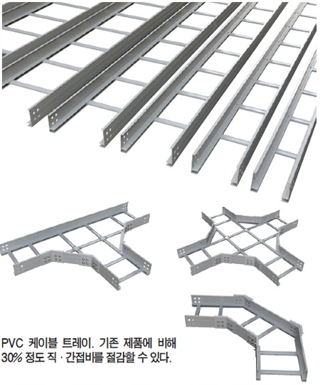 "PVC ÄÉÀÌºí Æ®·¹ÀÌ·Î ½Ã°øÇÒ °æ¿ì ±âÁ¸ Á¦Ç°º¸´Ù 30% Á¤µµ ºñ¿ëÀ» ÁÙÀÏ ¼ö ÀÖ½À´Ï´Ù. Áß·®ÀÌ °¡º±°í ½Ã°øÀÌ °£ÆíÇØ ½Ã°ø Àη°ú ±â°£À» ´ÜÃàÇϱ⠶§¹®ÀÔ´Ï´Ù. ¶ÇÇÑ, Ư¼ö ¹èÇÕ ¿ø·á¸¦ »ç¿ëÇØ Ãæ°Ý¼º°ú ¿°Çؼº, ³¿¬¼º(V-0 µî±Þ), Àý¿¬¼º µî ¿ì¼öÇÑ ¼º´ÉÀ» °®Ãè½À´Ï´Ù. º» Á¦Ç°Àº ¿Ü±¹ÀÇ ¼³Ä¡ »ç·Ê¿Í Çѱ¹Àü·Â¿¡¼ ÁöÇÏ °ø»ç ÇöÀå¿¡ ÀÚ»çí»ÞäÀÇ À¯»ç Á¦Ç° ¾à 50§°¸¦ ¼³Ä¡ÇÑ »ç·Ê¸¦ ÅëÇØ ÀÌ¹Ì °ËÁõÀ» ¹Þ¾Ò´Ù°í º¾´Ï´Ù."